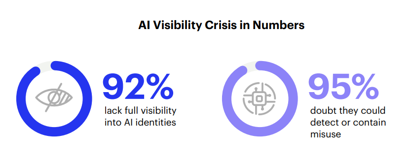 - 92% of organizations lack full visibility into AI identities, and 95% doubt they could detect misuse if it happened. AI is already acting in environments most security teams can’t monitor.