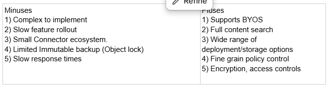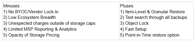 Point-in-time restore and granular item-level restore across M365 workloads, depending on backup configuration and frequency. There are no local infrastructure components required. Clumio becoming part of the Commvault product suite offers an appealing path to centralized governance, reporting and coverage across Microsoft environments for customers seeking a centralized data protection and management solution.