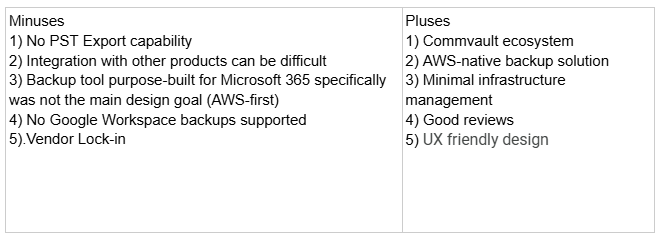 Clumio Backup is a cloud-native backup solution for SaaS platforms like Microsoft 365. Acquired more recently by Commvault to round-out its enterprise data protection portfolio. Service-orientation is a focus with M365 offerings showing this foundational design with SaaS-specific protection leaning more towards operational simplicity and SaaS protection at scale.