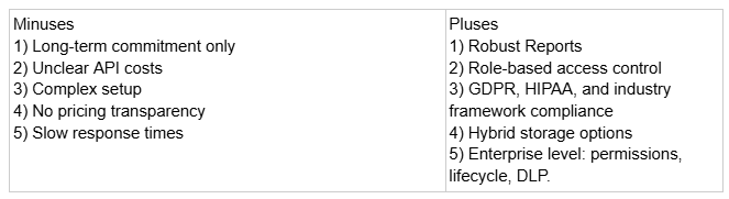 Prices were collected from public resources only (such as vendor websites, reviews, e-commerce sites, and other public materials) at the time of writing. Prices shown are approximate, and actual prices may differ by region, contract, license type, storage consumption, negotiation, etc. Prospective buyers should contact the vendor directly about actual offers. If a vendor is not listed in the table, it means that pricing information could not be found on the vendor’s website or in other publicly available sources at the time of research.