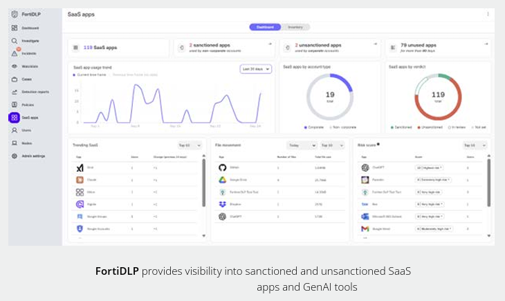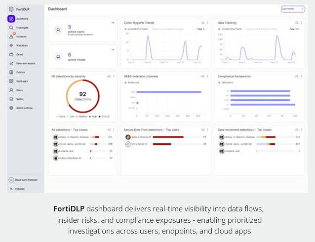 When paired with Fortinet’s broader Security Fabric, FortiDLP extends unified visibility into the data layer, linking users, endpoints, SaaS apps, and sensitive content into one ecosystem.