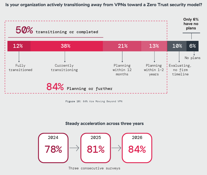 The strategic debate over whether to move beyond VPN is effectively settled. The hard part now is execution: how fast organizations can transition, and how much exposure accumulates during coexistence.